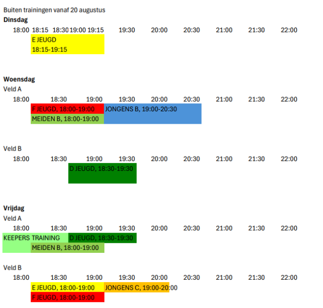 Beste handballers! Woensdag 21 augustus is het weer zover, de vakantie is ten einde en de trainingen starten weer. In de bijlage vind je het trainingsschema voor komend seizoen terug. Voor de jeugd starten de veldtrainingen op woensdag 21 augustus en de zaal trainingen op woensdag 25 september. De A-jeugd starten meteen met zaaltrainingen vanaf…