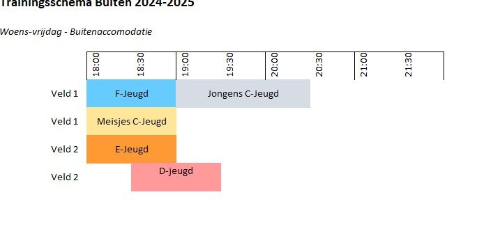 Bijgevoegd het trainingsschema voor zowel de buitentrainingen als de binnentrainingen.…